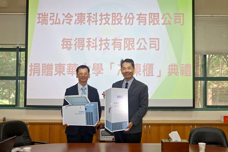 東華大學感謝「瑞弘冷凍科技股份有限公司」及「每得科技有限公司」捐贈冷凍櫃)
